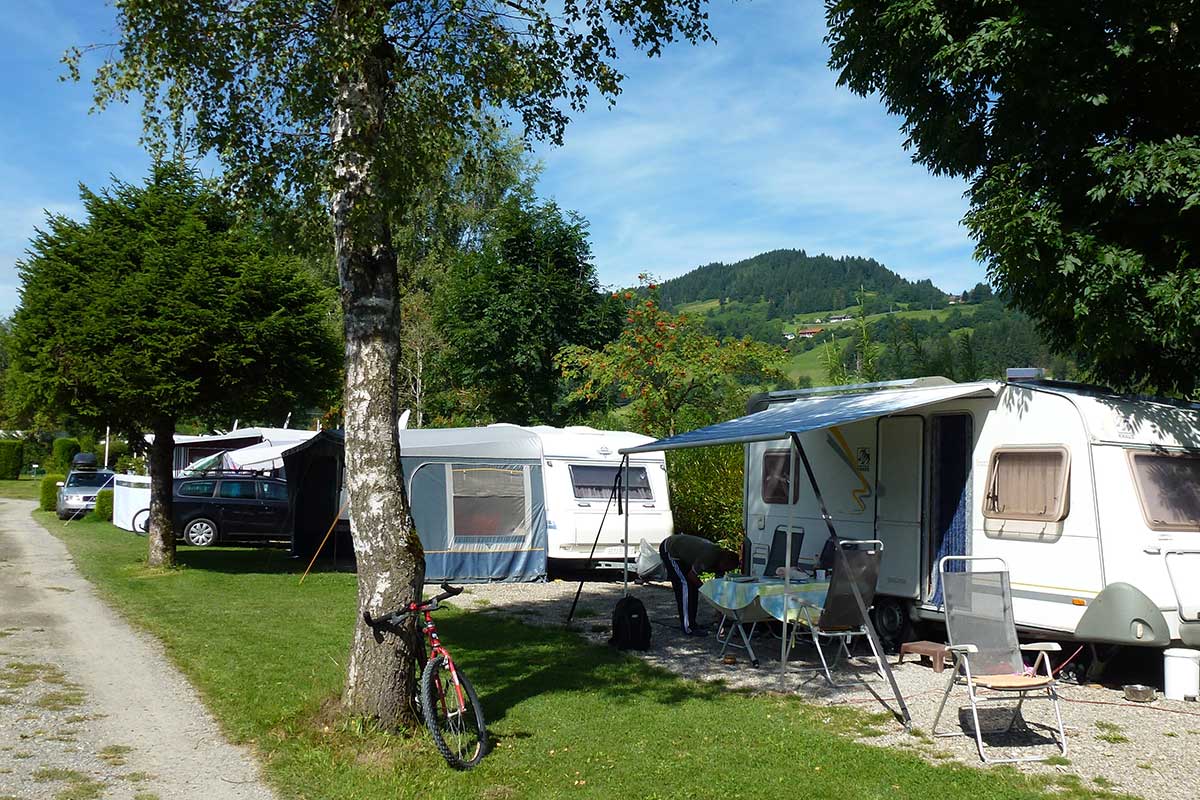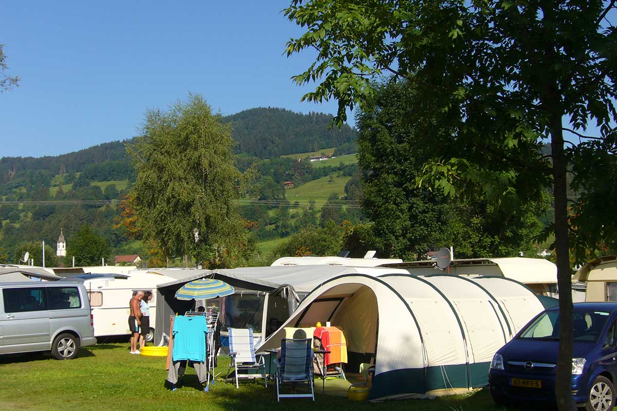 Camping im Sommer auf unserem Campingplatz im Landschaftsschutzgebiet direkt am Niedersonthofener See.