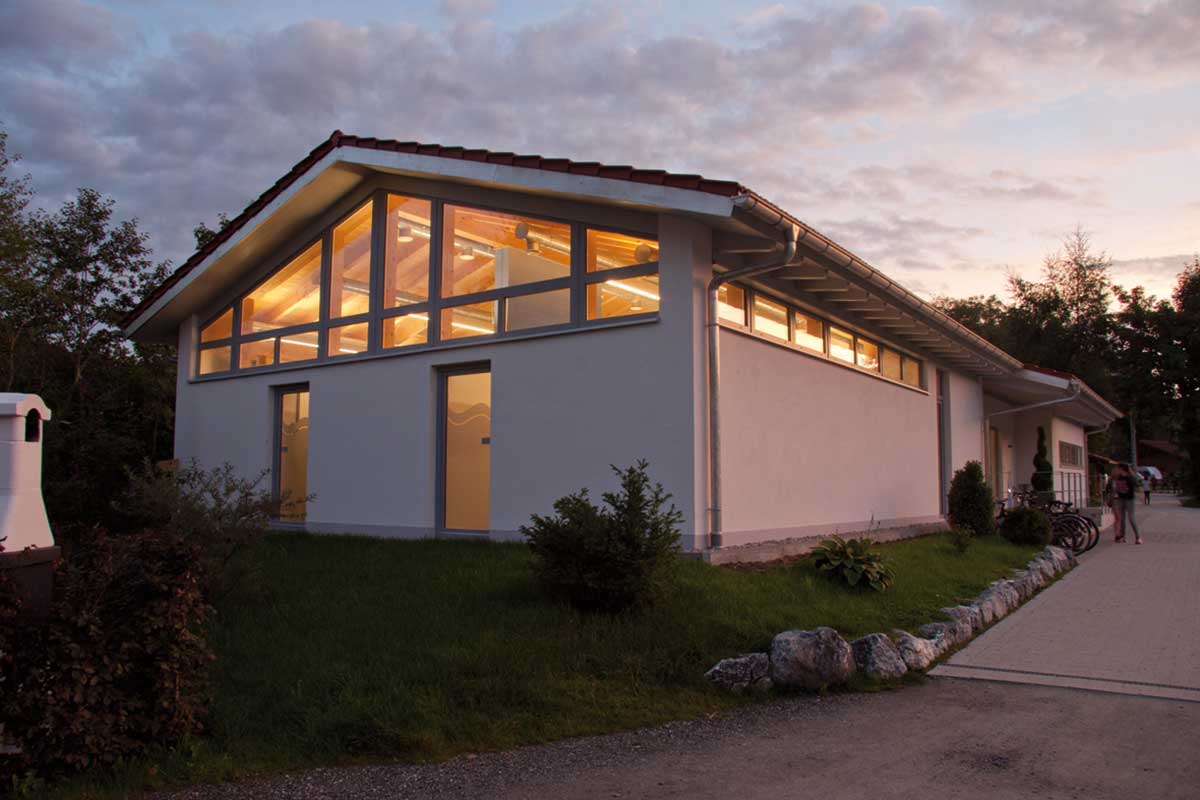 Viel Holz und Glas sorgen für eine lichtdurchflutete, angenehme Atmosphäre. Der Panoramablick beim Geschirrspülen ist ein Traum. Das Gebäude ist barrierefrei und mit Fußbodenheizung ausgestattet. Die Duschen sind ohne Münzen nutzbar.